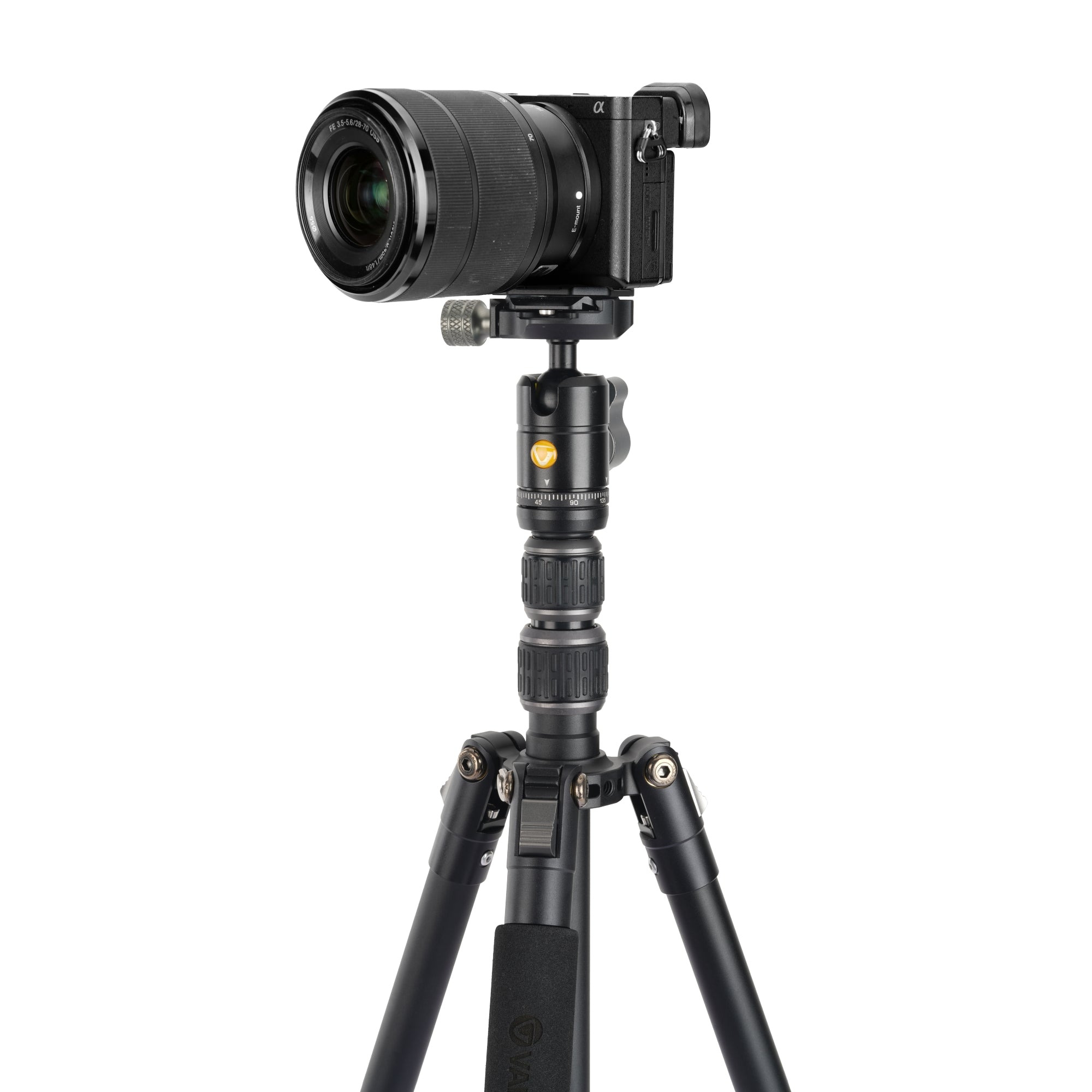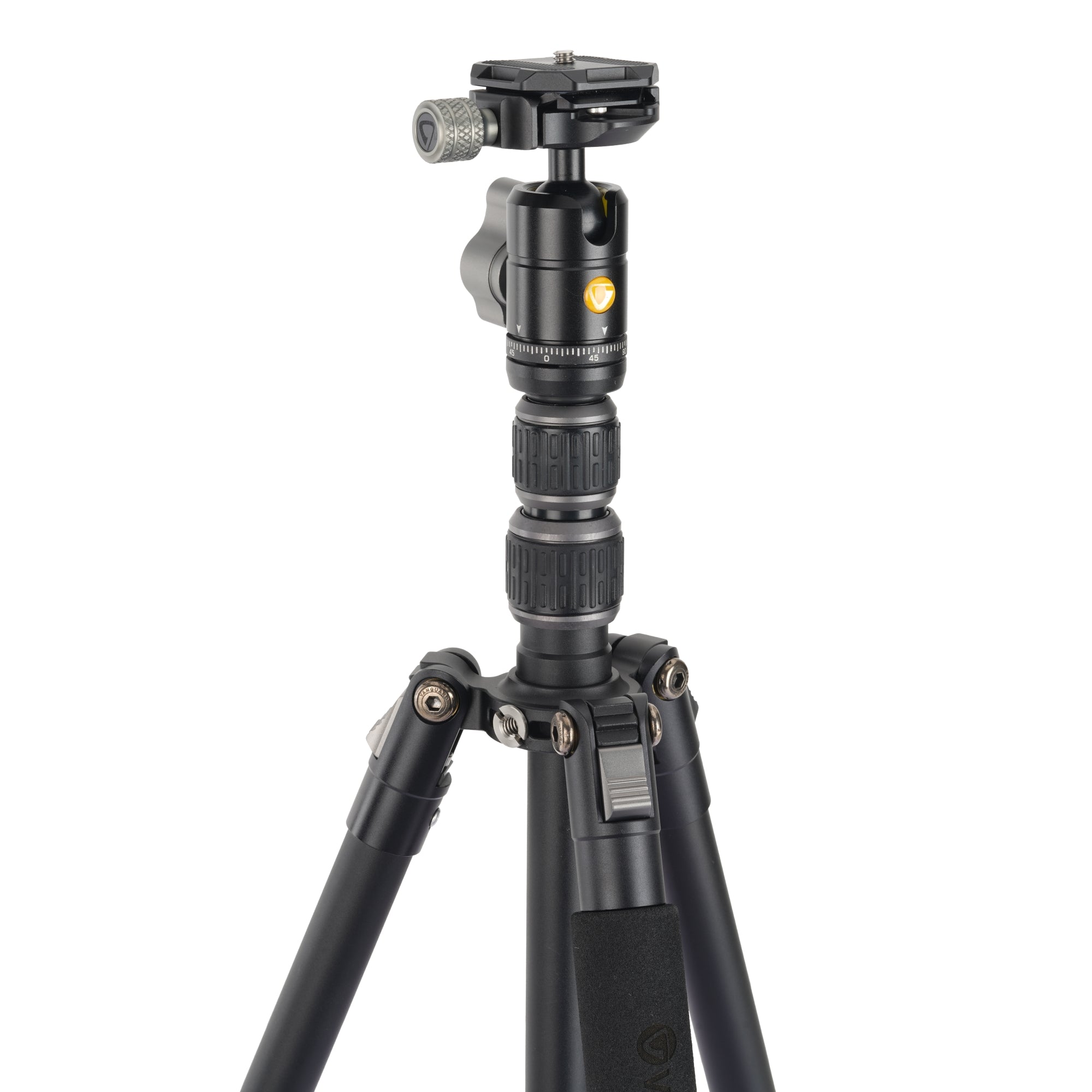 The BH-45 ball head allows you to use any Arca-compatible quick-release plate (QS-45H included). The head also has an ergonomic locking knob that makes it easy to lock it in for your shot, even in cold and wet conditions where you need to wear your gloves. To ensure that you’re not unscrewing the head by mistake as you set your shot, the head is secured to the central column with set screws.